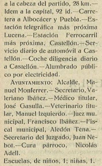 Gràcies a les guies comercials també podem conèixer dades sobre Vistabella del Maestrat. Un exemple és Castellón Guia Comercial de la Provincia on trobem informació dels habitants i serveis que hi havia al poble l’any 1921.
