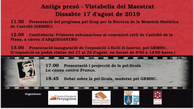 El proper dia 17 d’agost, dissabte, es faran a l’edifici de l’Antiga Presó del carrer Jesús les activitats emmarcades dins les X Jornades de Memòria Històrica de Vistabella del Maestrat.