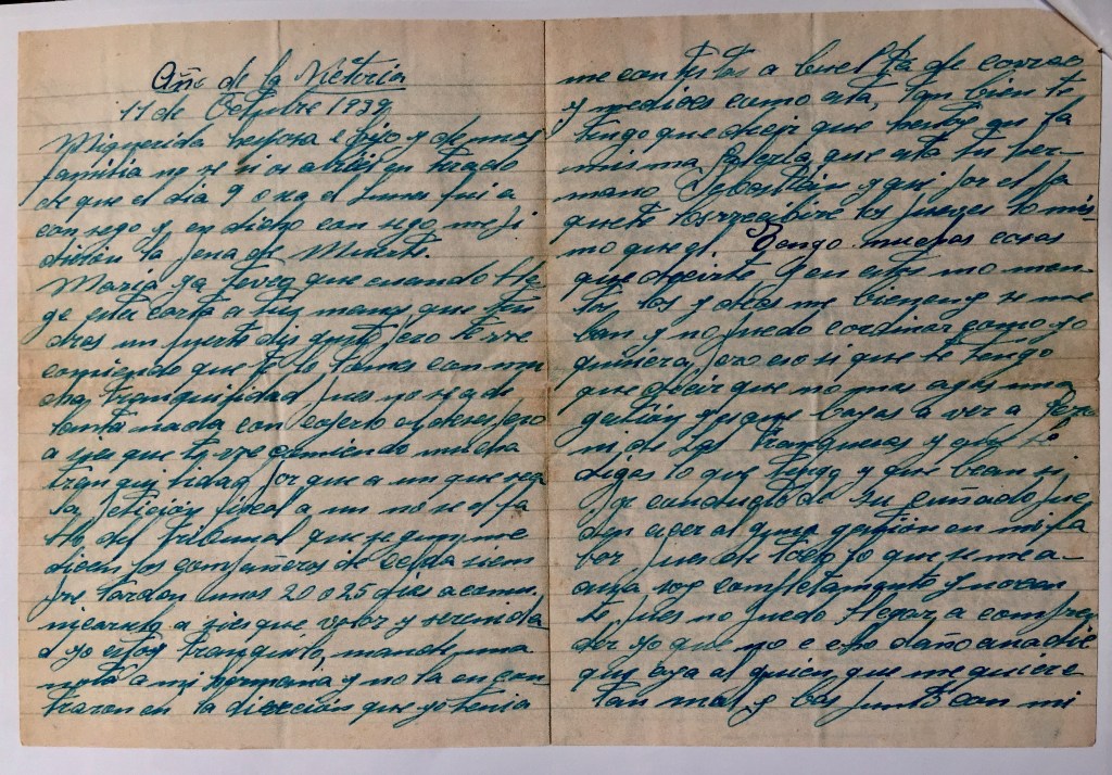 Les seues cartes a la família, des de la presó Model de Barcelona, són testimoni de la cruel realitat de 1939. M’han condemnat a mort, però no et desesperes, jo estic tranquil. Cuida el meu fill. Sóc innocent de tot això que m’acusen. Envia’m cartes i segells. I algun diner, si pots. El comandant Escrig sabia que seria executat però no imaginava que les seues idees tornarien a ser legals trenta-vuit anys més tard.