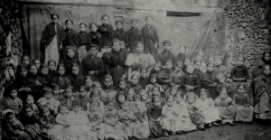 [Escola de xiques] c.1887-1897 Dolores Redón podria ser la mestra vestida de blanc. Arxiu de Vistabella del Maestrat. Fons familiar Rosa Moliner Medall, viuda de Manolo de Cambra