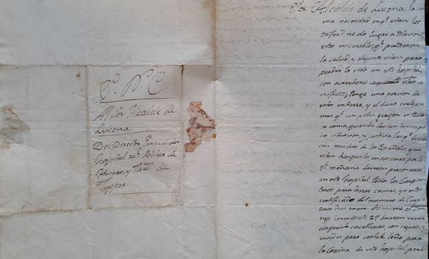 Dins la caixa 157 de l’Arxiu de Llucena es conserva aquesta carta manuscrita datada a Sant Joan el 1813.Ā El director de l’Hospital Militar de Husares y Tiradores de TupperĀ demana a l’alcalde de Llucena fusters per a fer llits per als soldats i persones que fagen llenya per al foc.