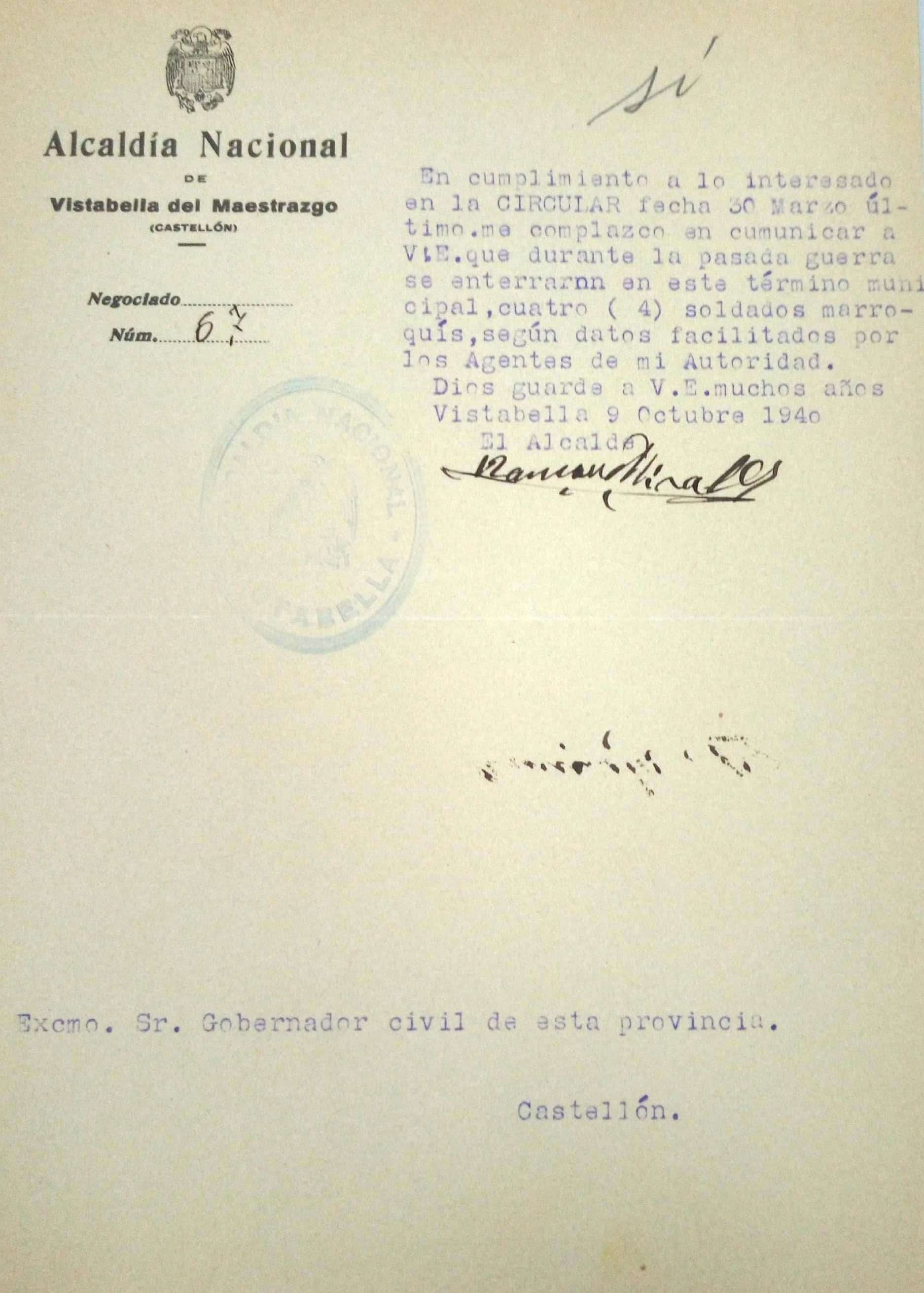 [ā¦] los autores de la capea que tuvo lugar el dĆa 14 del corriente fueron D. Francisco Gil Solsona, D. Ignacio P. Gomis Alonso, auxiliados por el novillero Silvino Rodriguez (a) NiƱo de la Estrella, natural de la aldea de La Estrella del municipio de Mosqueruela (Teruel) auxiliado por un compaƱero y un hijo del vecino de Villafranca del Cid, Julio Monfort. [ā¦]