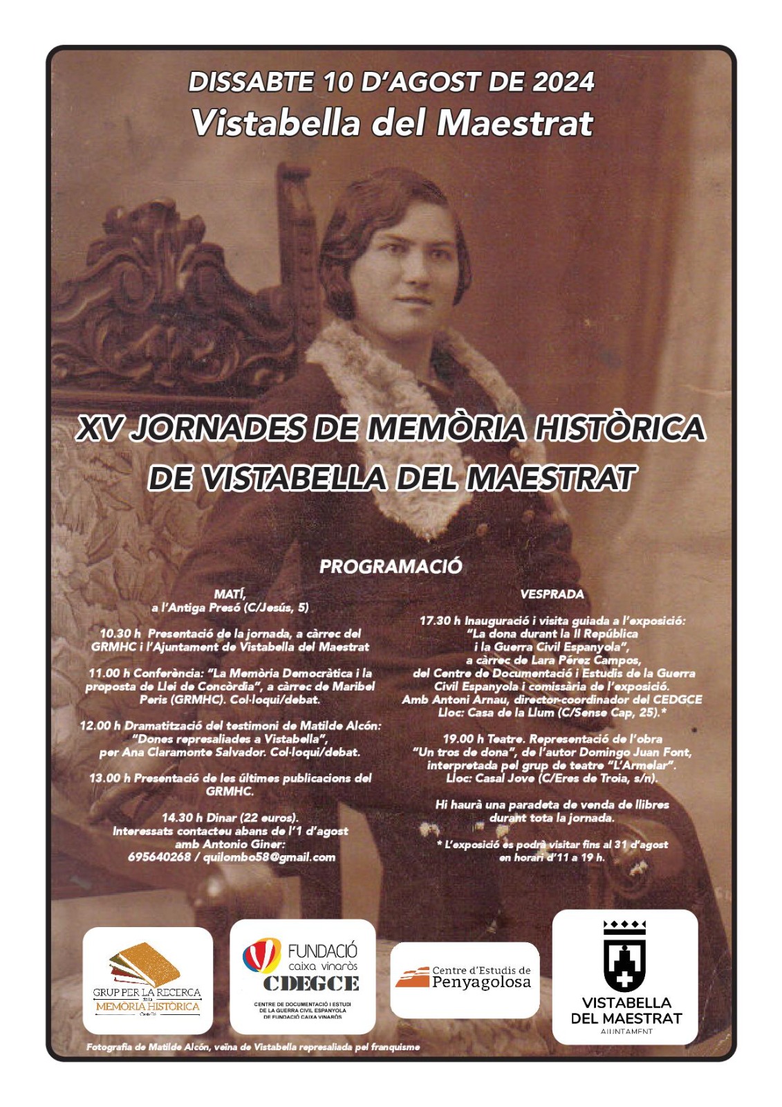 – Dramatització de los testimonios de Matilde Alcón Tena, exposición “La dona durant la II RepĆŗblica I la Guerra Civil Espanyola”, y la obra de teatro “Un tros de dona”.