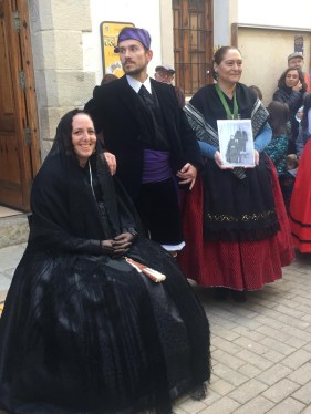 Els davantals grisos de les cuineres i els davantals blancs de les cambreres anuncien que darrere la porta hi ha llargues taules d’amics i familiars que s’han trobat per beure i menjar. Però és la presència de la padrina, amb peineta de teja i mantellina, carregada en els seus regals per als convidats la que ens confirma que algú s’acaba de casar. El regal de la padrina posava el punt final al convit de la boda, i després sempre hi havia ball.