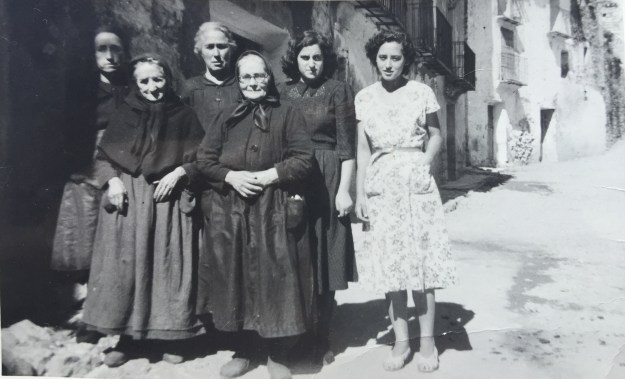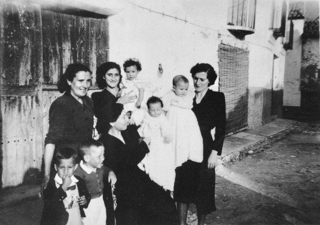 En plena posguerra, quan tenia trenta-cinc anys es va retratar en les seues filles majors davant d’un avió fet de llenƧol, per sant joan d’agost.