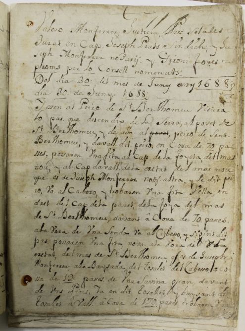 - Visura dels Masos i Passos. Any 1688. Feta entre el 30 de juny i el 13 de juliol de 1688 és el document original més antic de l’Arxiu Municipal.